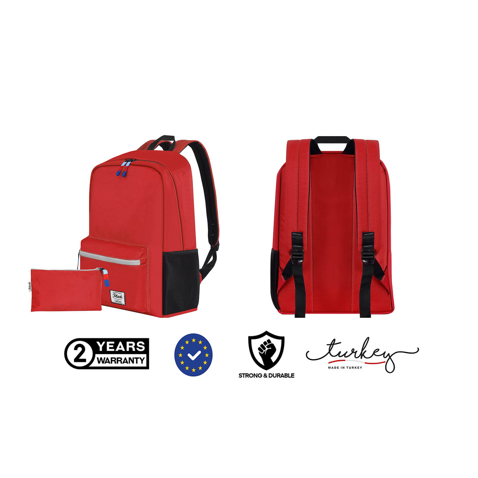 Dayanıklılık ve Kaliteli Malzeme: Sırt çantası aşınmaya dirençli, su iticili ve su geçirmez kumaştan üretilmiştir. Sırt çantasının tüm bileşenleri Avrupa Birliği normlarına göre Türkiye’de üretilmiş olup hiçbir zararlı madde içermez.