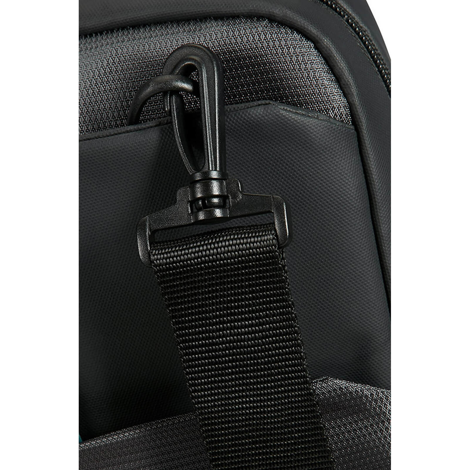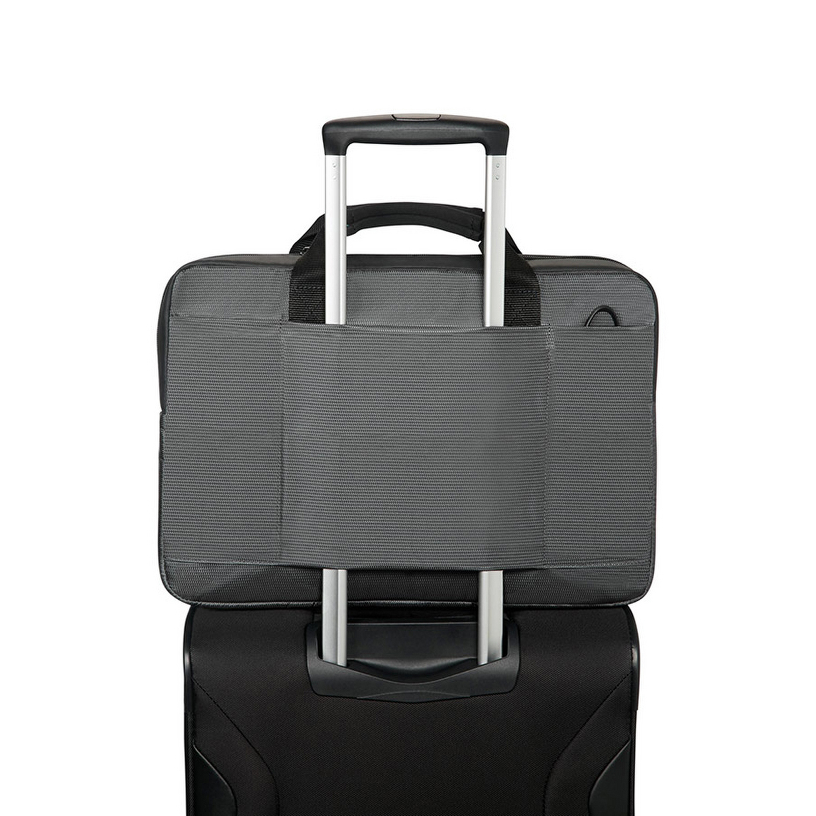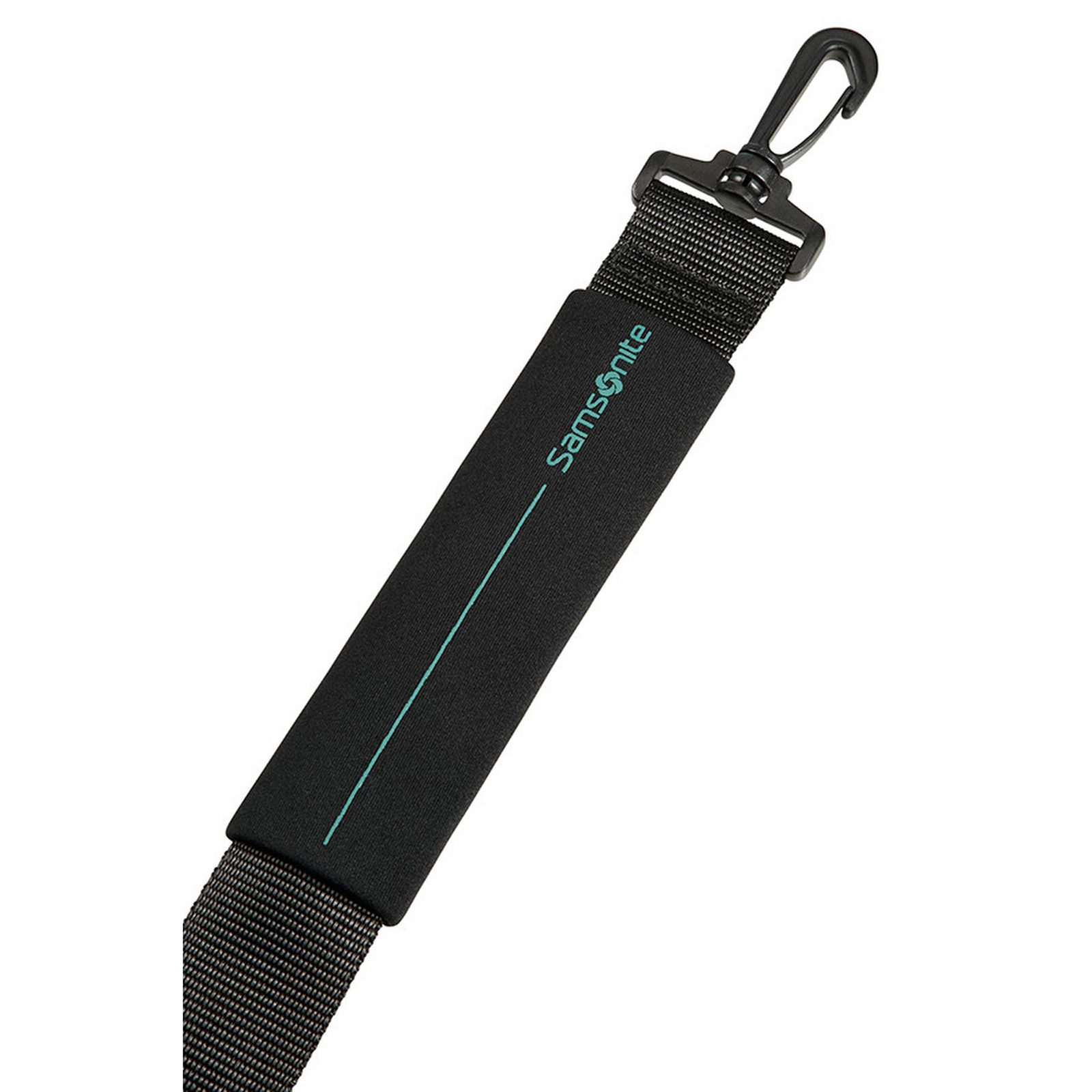 Daha çağdaş bir görünüm için siyah metal Samsonite logosu