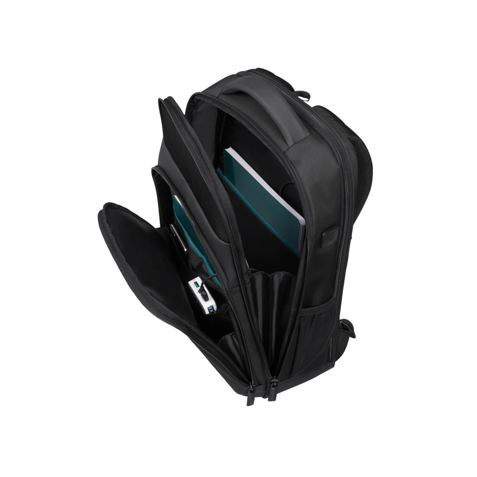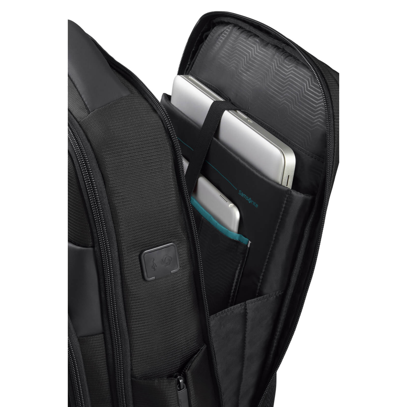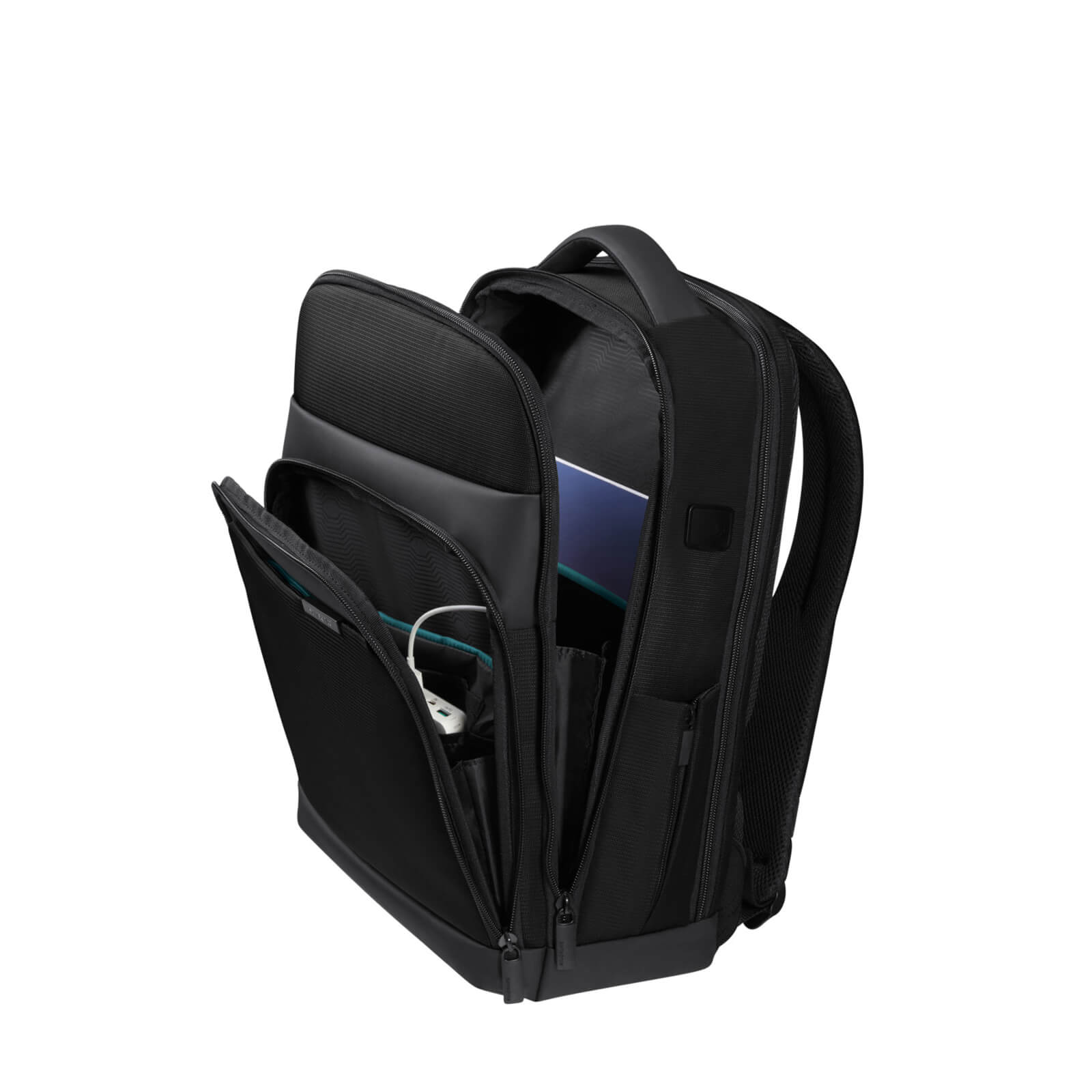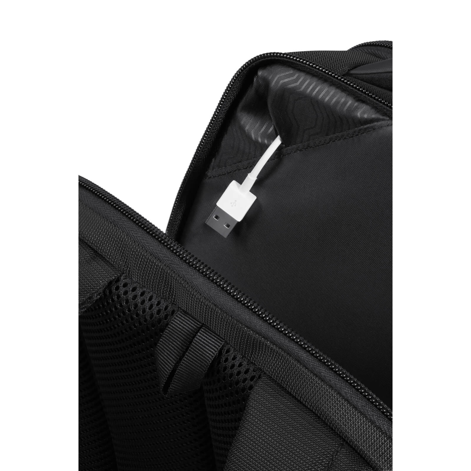 Easy Pass: Kabloların çanta bölmelerinden geçmesine izin vererek elektronik cihazları çıkarmadan şarjda tutan kablo yönetim sistemi.